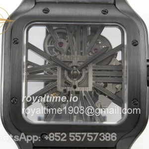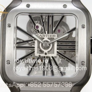 Cartier Santos Skeleton PVD RF Skeleton Dial on Gray Leather Strap 9612MC