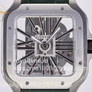 Cartier Santos Skeleton SS RF Skeleton Green Dial on Green Leather Strap 9611MC