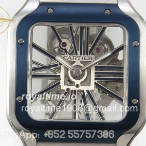 Cartier Santos Skeleton SS RF Skeleton Dial Blue Bezel on SS SmartLink Bracelet 9611MC
