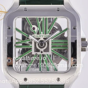 Cartier Santos Skeleton SS/PVD RF Skeleton Dial on Green Leather Strap 9611MC