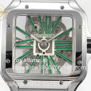 Cartier Santos Skeleton SS RF Skeleton Green Dial on SS SmartLink Bracelet 9611MC