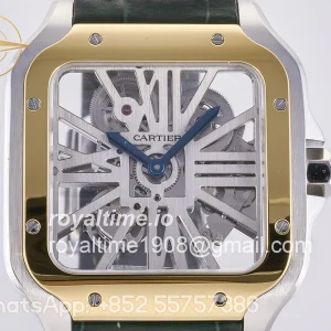Cartier Santos Skeleton SS/YG RF Skeleton Dial on Green Leather Strap 9611MC