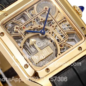 Cartier Santos-Dumont (Large) Skeleton Watch in Yellow Gold on Black Leather Strap