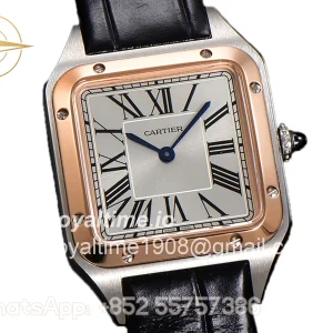 Cartier Santos-Dumont (Small) Silver Dial in Steel/Rose Gold on Black Leather Strap Ref. W2SA0012