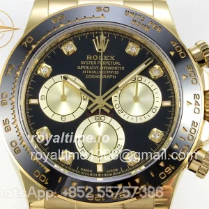 Rolex Daytona 126508 AVF Black/YG Diamonds Dial on YG Bracelet DD4131 (Mod)