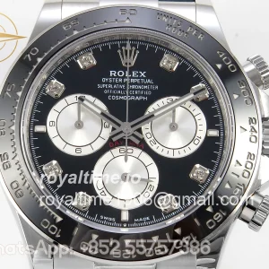 Rolex Daytona 126519 AVF Black/Silver Diamonds Dial on Oysterflex Strap DD4131 (Mod)