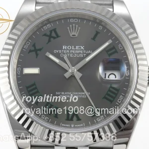 Rolex DateJust 41 126334 904L SS SCF Gray Dial Green Roman on Jubilee Bracelet VR3235