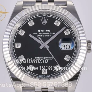 Rolex DateJust 41 126334 Clean Plus 904L Steel Black Diamonds Dial on Jubilee Bracelet JH3235 (Free Sprung)