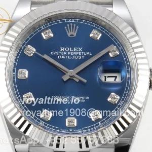 Rolex DateJust 41 126334 904L SS SCF Blue Diamonds Dial on Oyster Bracelet VR3235
