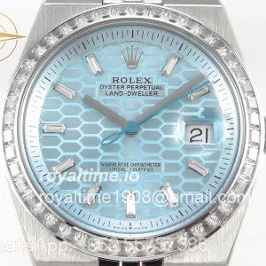 Rolex Land Dweller 127336 DIWF Ice Blue Textured Dial Diamonds Bezel on SS Bracelet A7135