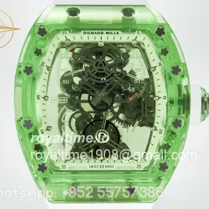 Richard Mille RM56-01 Green Transparent Tourbillon RMF Skeleton Dial on White Rubber Strap