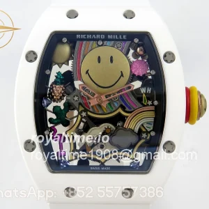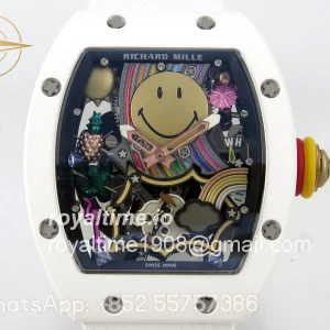 Richard Mille RM88 Tourbillon Smiley White Ceramic RMF on White Rubber Strap