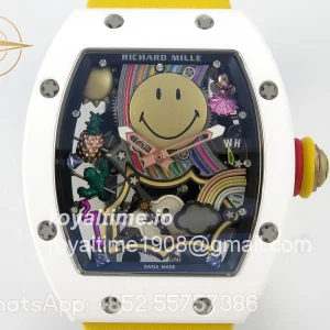 Richard Mille RM88 Tourbillon Smiley White Ceramic RMF on Yellow Rubber Strap