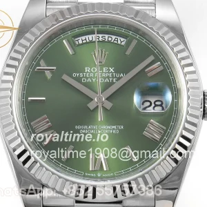 Rolex Day Date 40 SS TMF Green Roman Dial on President Bracelet VR3255 (Weighted) 208g