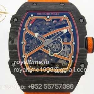 • Sale! Richard Mille AVF RM67-02 McLaren Black NTPT Spain Skeleton Dial on Orange Elastic strap CRMA7