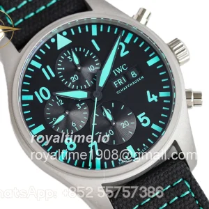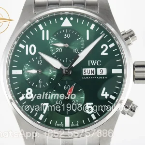 IWC Pilot’s Watch IW388104 BLSF Performance Chronograph 41mm SS Green Dial On Stainless steel bracelet A7750 to 69385