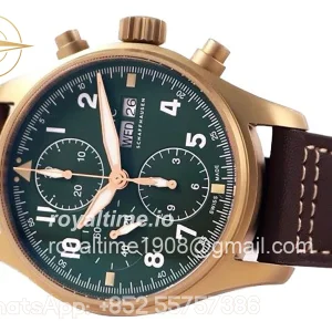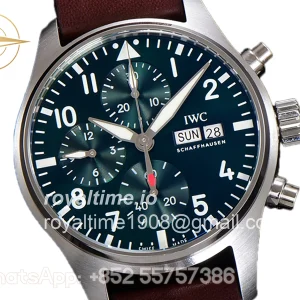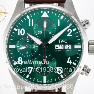 IWC Pilot’s Watch IW388104 BLSF Performance Chronograph 41mm SS Green Dial On Brown Rubber Strap A7750 to 69385