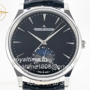 Jaeger-LeCoultre Master Ultra Thin Moon 1368420 SS Z+F Black Dial on Black Leather Strap SA925