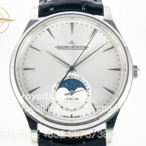 Jaeger-LeCoultre Master Ultra Thin Moon 1368420 SS Z+F White Dial on Black Leather Strap SA925