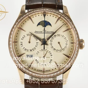 Jaeger-LeCoultre Master Ultra Thin Perpetual Calendar RG V9F Cream Dial on Brown Leather Strap A868 V2