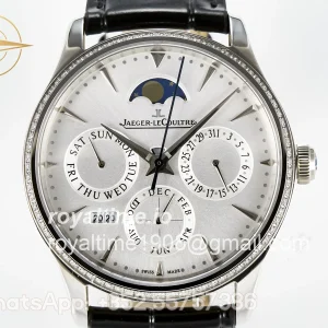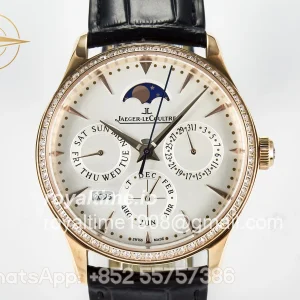 Jaeger-LeCoultre Master Ultra Thin Perpetual Calendar RG V9F White Dial Diamonds Bezel on Black Leather Strap A868 V2