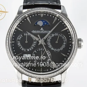 Jaeger-LeCoultre Master Ultra Thin Perpetual Calendar SS V9F Gray Dial Diamonds Bezel on Black Leather Strap A868 V2