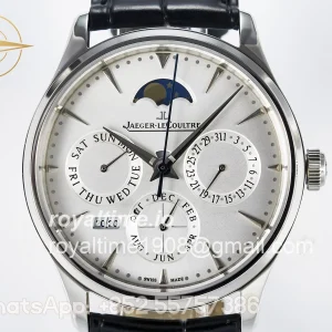 Jaeger-LeCoultre Master Ultra Thin Perpetual Calendar SS V9F White Dial on Black Leather Strap A868 V2