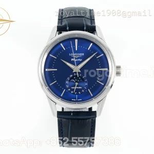Longines APSF Flagship Heritage Moonphase SS Blue Dial Stick Markers on Blue Leather Strap A2892