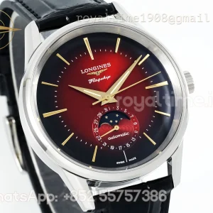 Longines APSF Flagship Heritage Moonphase SS Red Dial on Black Leather Strap A2892