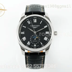 Longines APSF Flagship Heritage Moonphase SS Black Dial Roman Markers on Black Leather Strap A2892