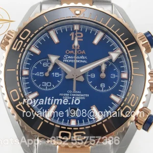 Omega Planet Ocean 600M Chrono SS VRF Black Bezel Blue Dial on RG/SS Bracelet A9900