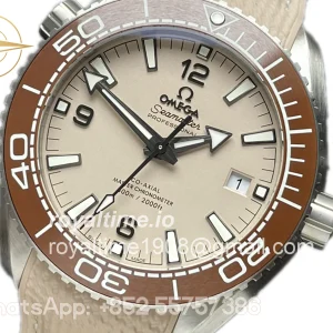 Omega Seamaster Planet Ocean 600M 43.5mm Steel Beige Dial on Rubber Strap