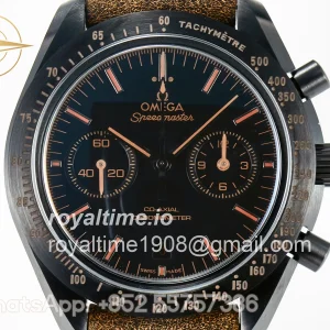 Omega Speedmaster “Dark Side of The Moon” Real Ceramic N1F Vintage Black on Brown Leather Strap A9300
