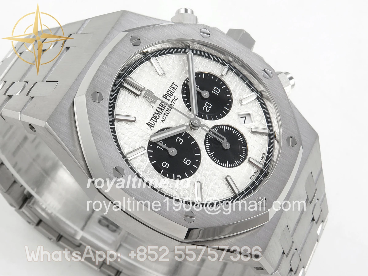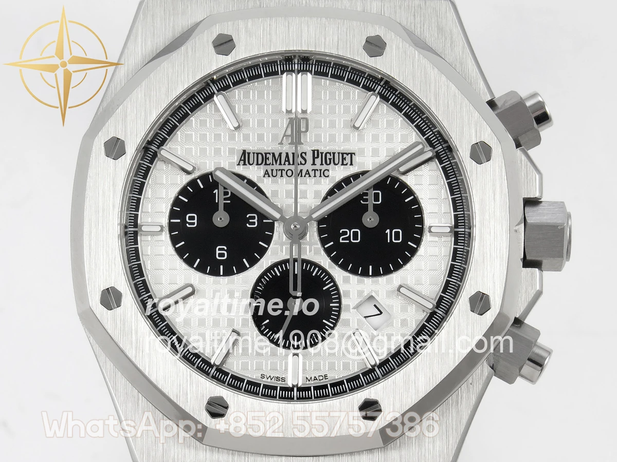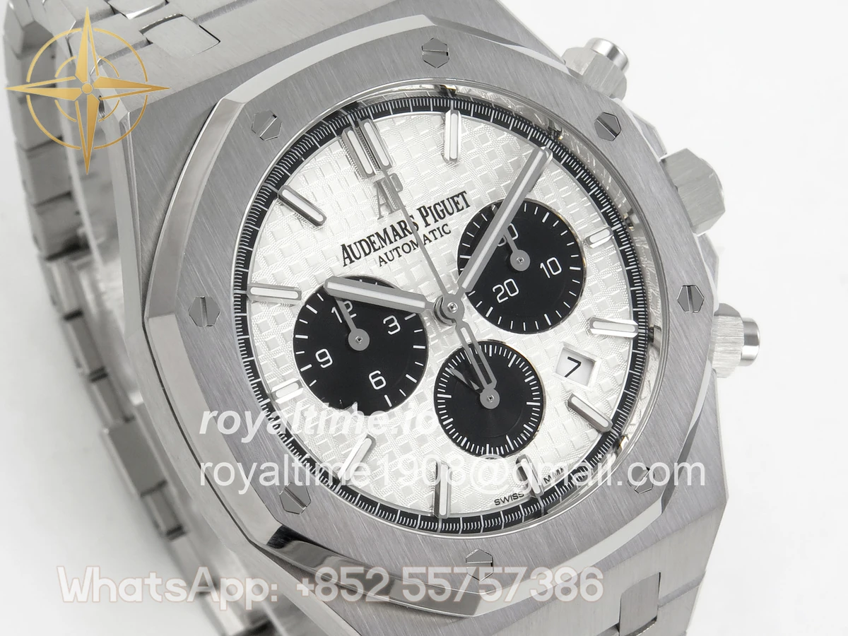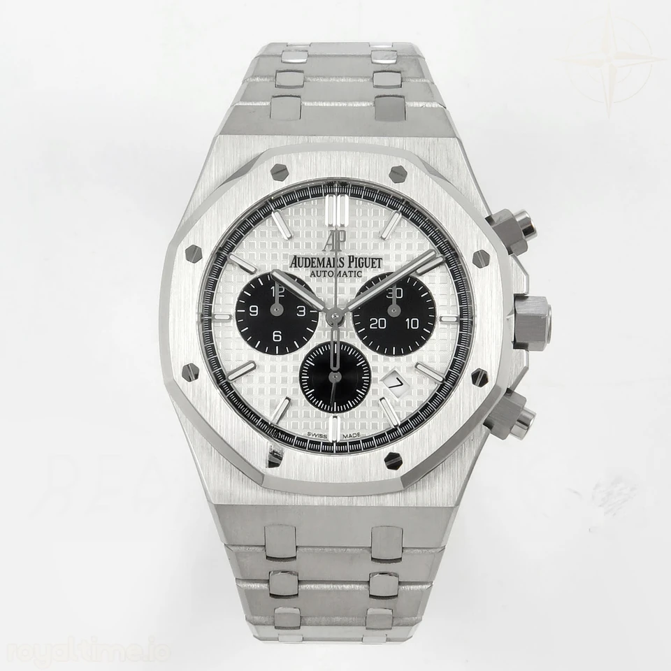 | Dial | White textured dial with black sub dials |