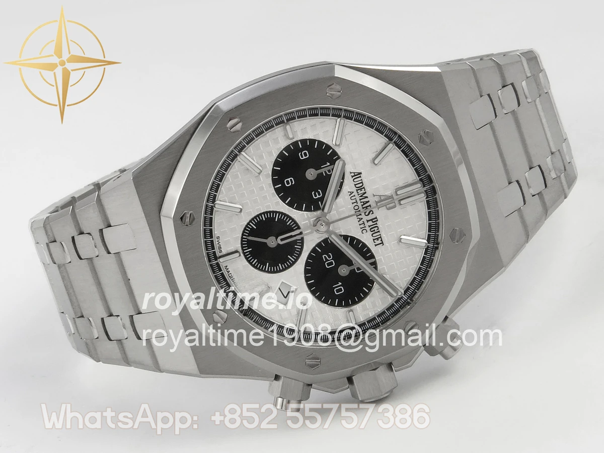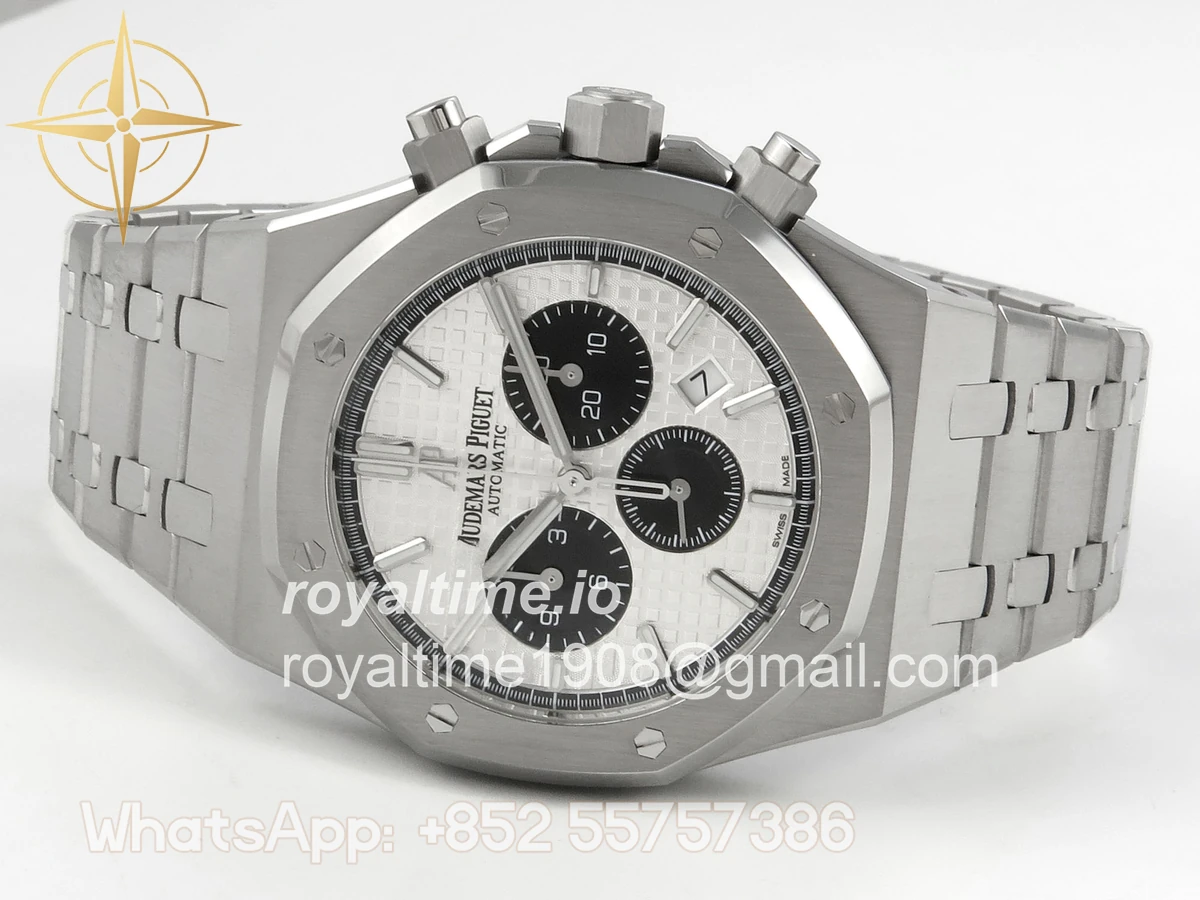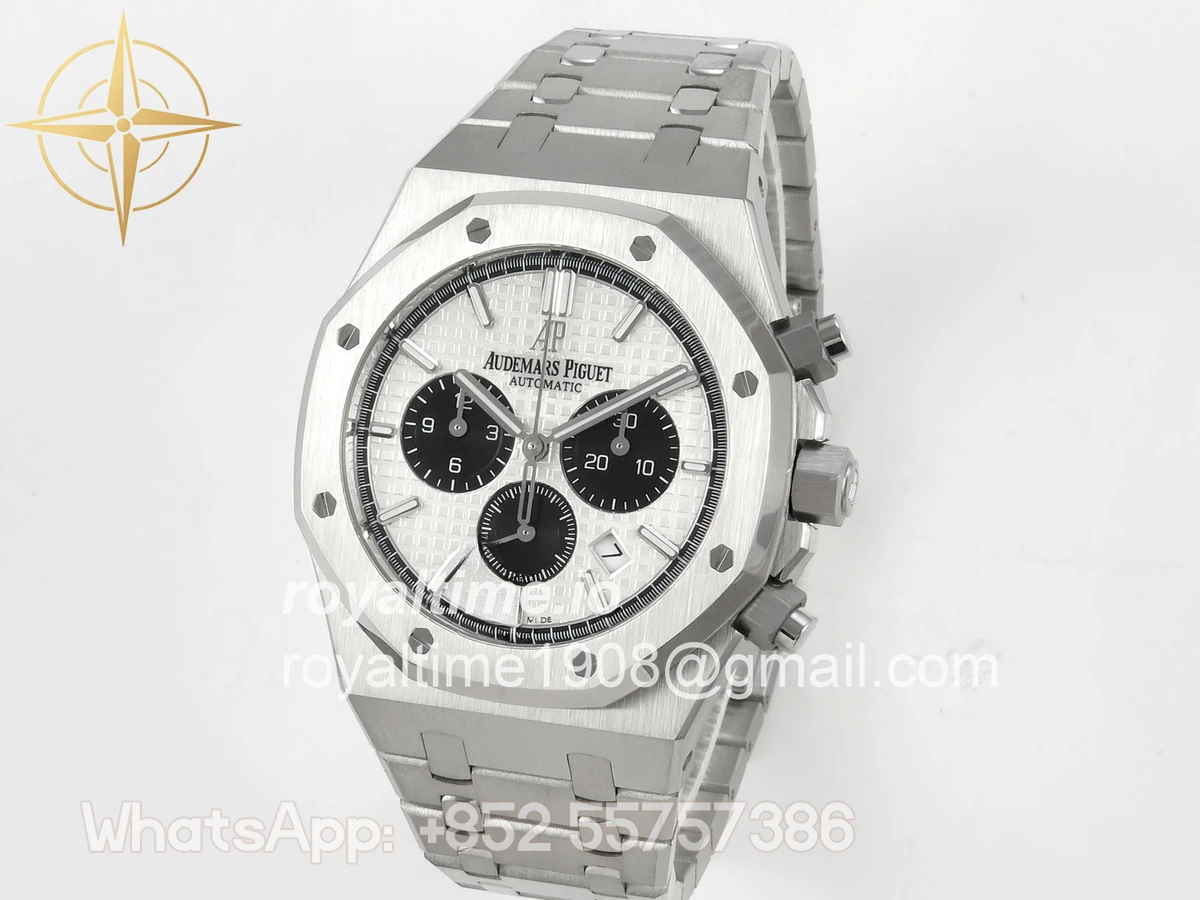 | Dial | White textured dial with black sub dials |