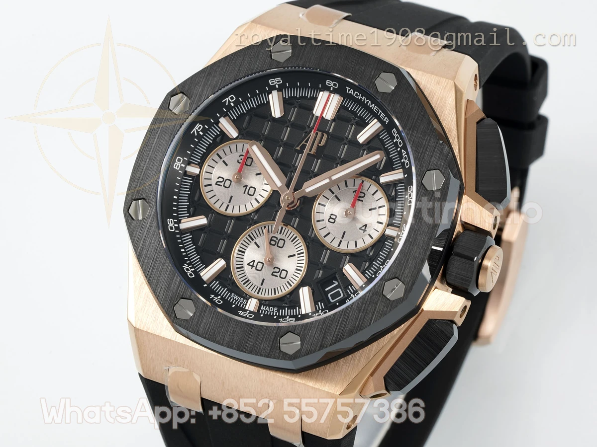 Audemars Piguet Royal Oak Offshore 26420RO 43mm APSF Rose Gold Black Dial on Rubber Strap SA/SH4401 Super Clone V5