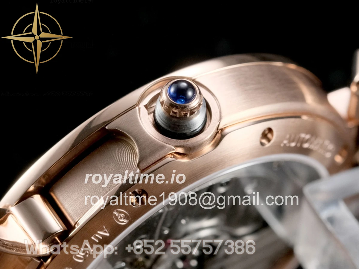 | Case | 18k rose gold plated solid 316L stainless steel case |