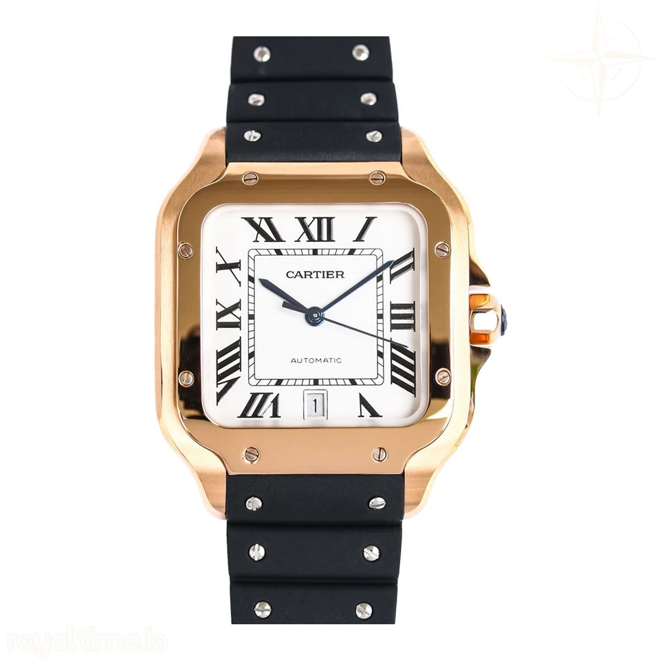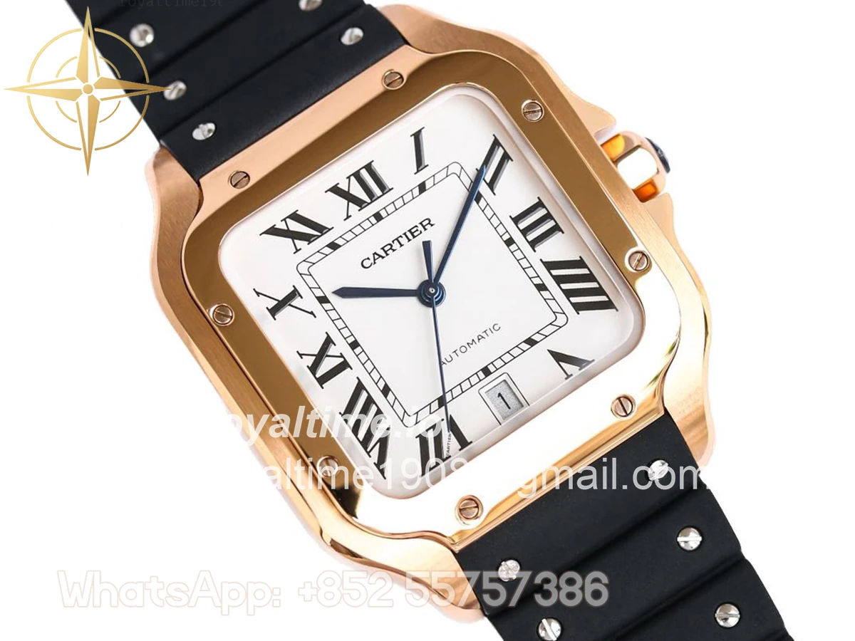 Cartier Santos de Cartier 40mm White Dial in Rose Gold on Black Rubber Strap