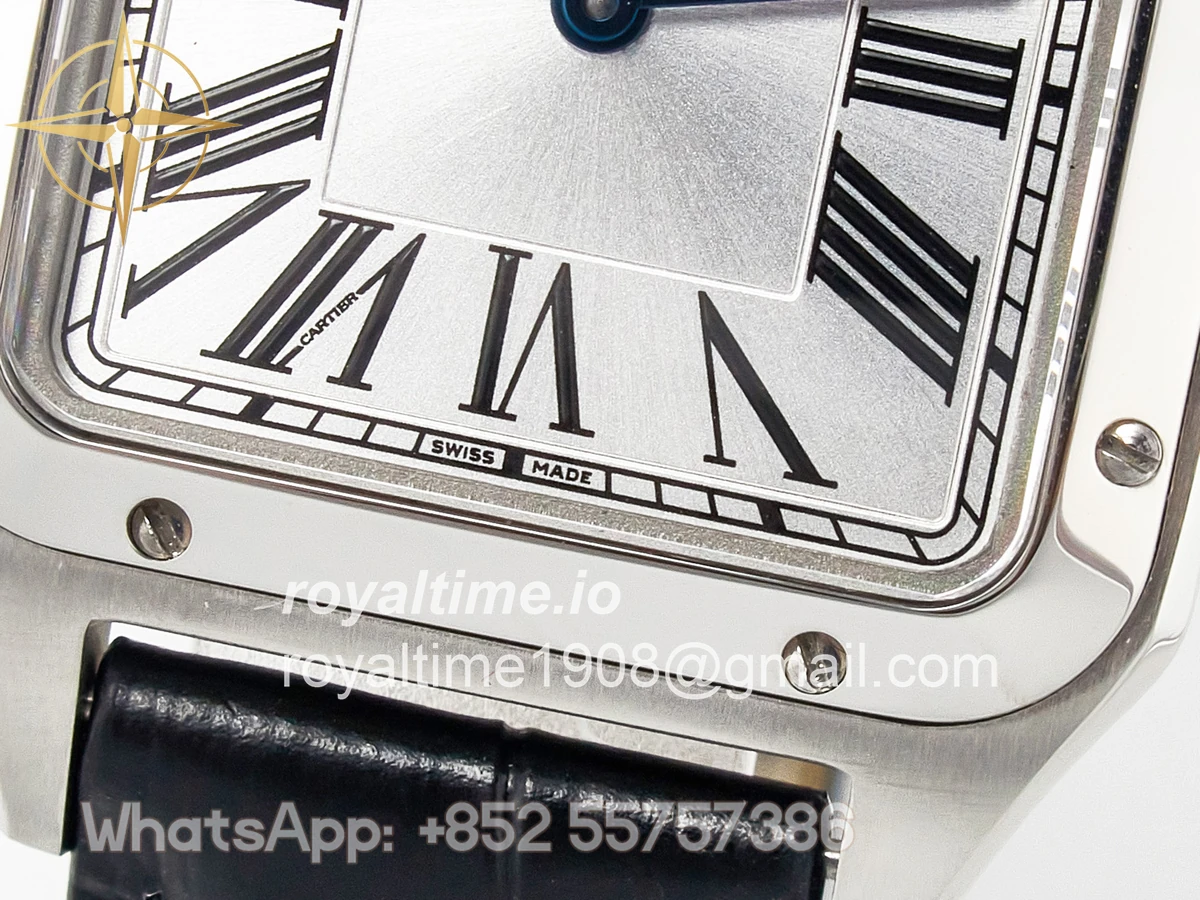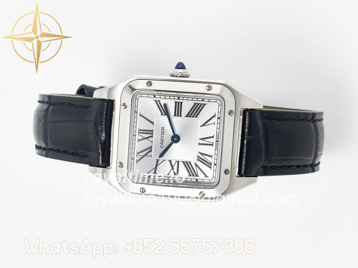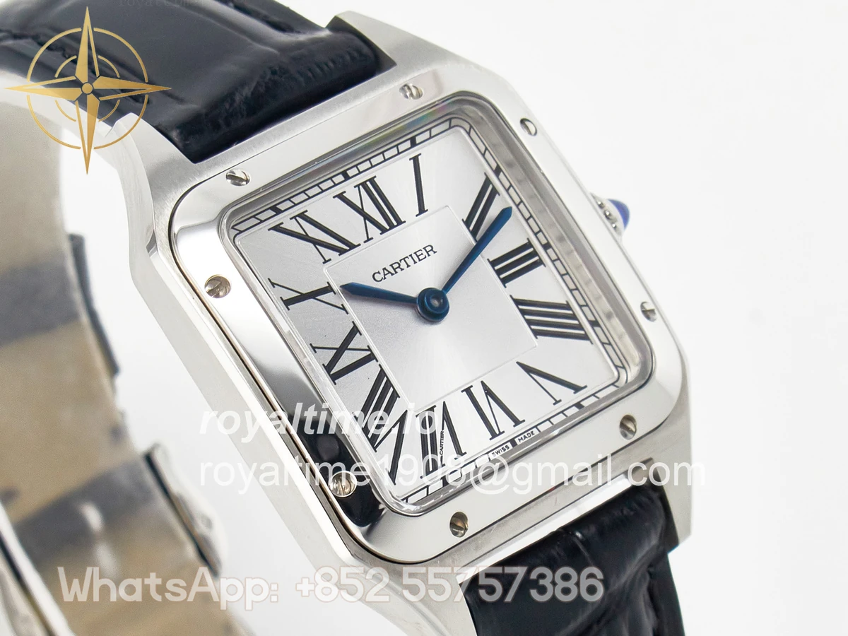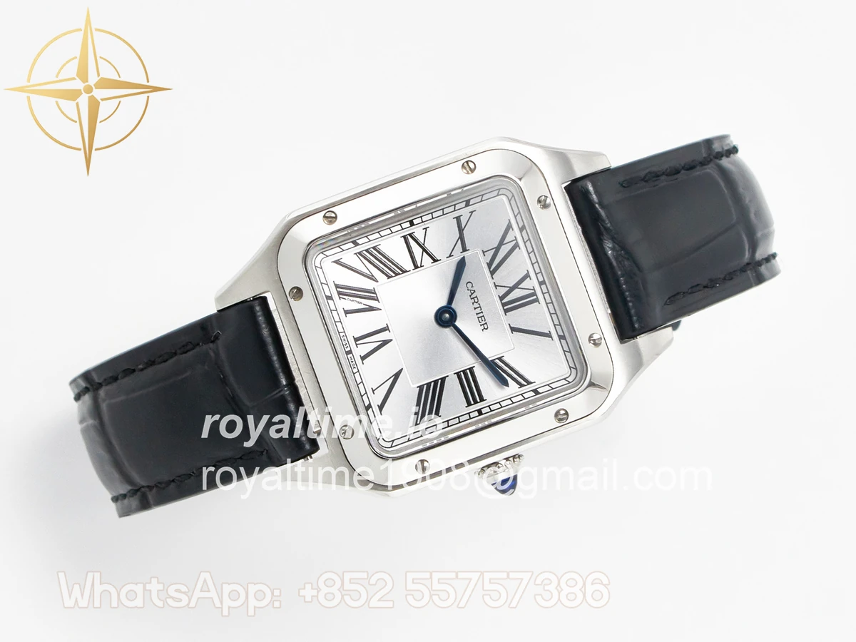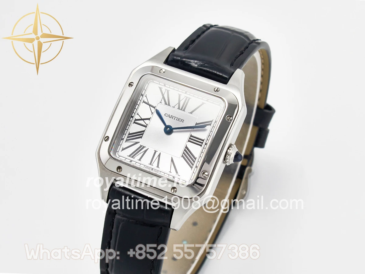 Cartier Santos Dumont 27.5mm IWSF Silver Dial on Black Leather Strap Quartz