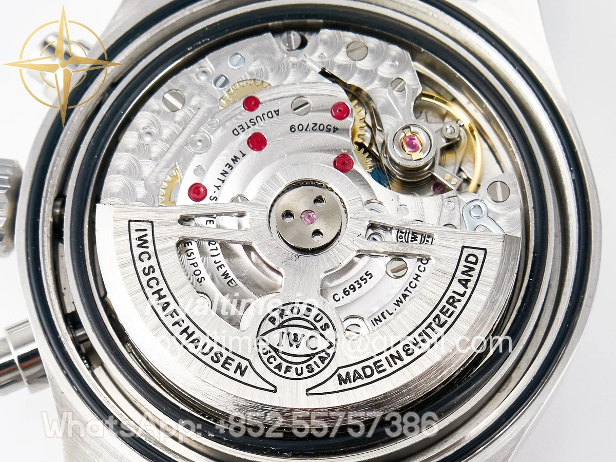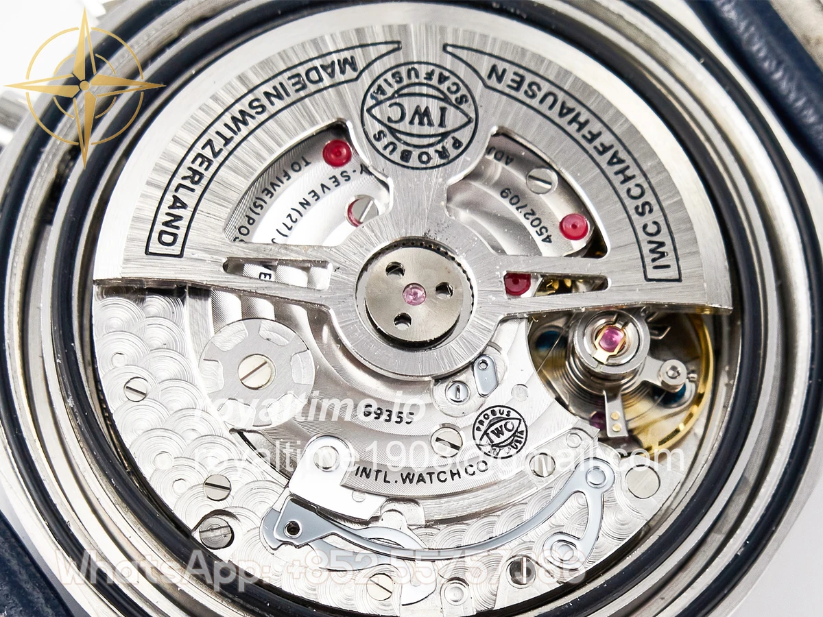 | Movement | New IWC 69385 Movement Clone. Base Movement: Asian 7750 automatic chronograph movement 28800 vph; Decoration: Platinum plated movement plate and rotor which are made according to the genuine movement, the best looking IWC 69385 Movement Clone at the moment. |