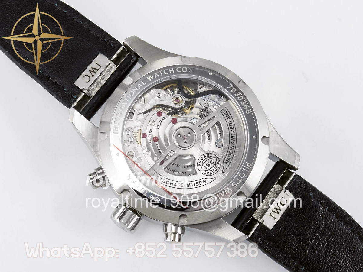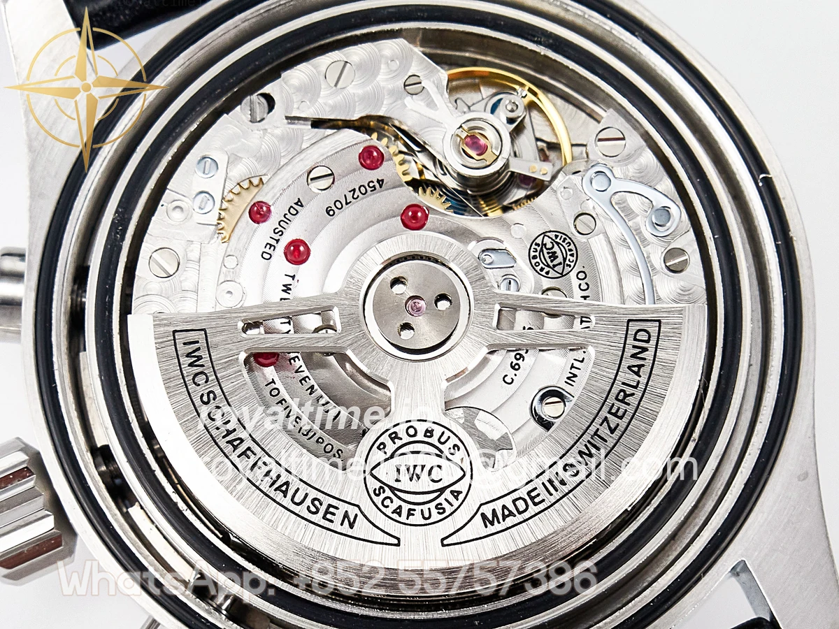 | Movement | New IWC 69385 Movement Clone. Base Movement: Asian 7750 automatic chronograph movement 28800 vph; Decoration: Platinum plated movement plate and rotor which are made according to the genuine movement, the best looking IWC 69385 Movement Clone at the moment. |