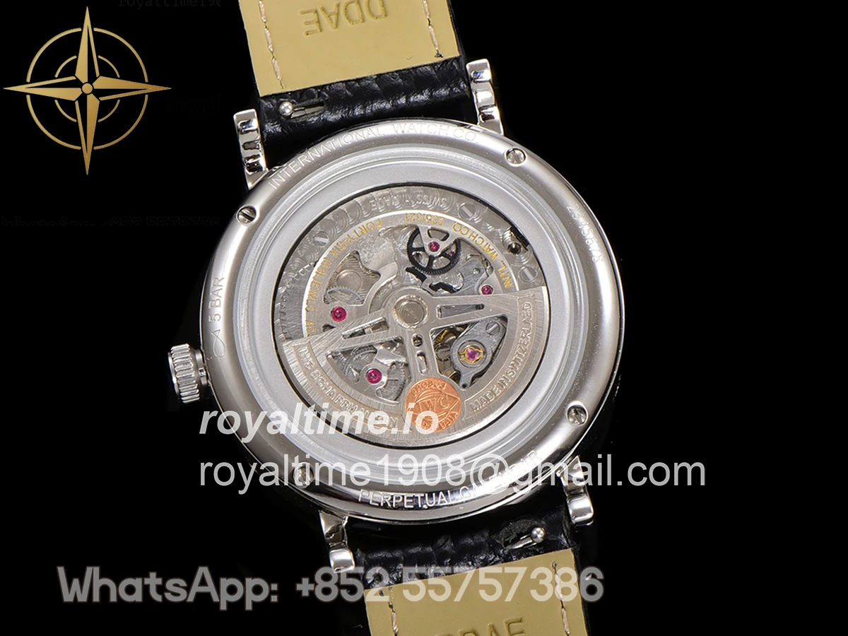 | Movement | Asian clone 23J automatic movement @21,600vph with platinum plated bridges and decorated rotor to look like IWC52610 calibre |