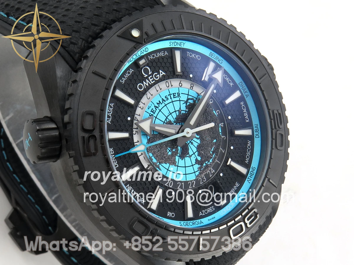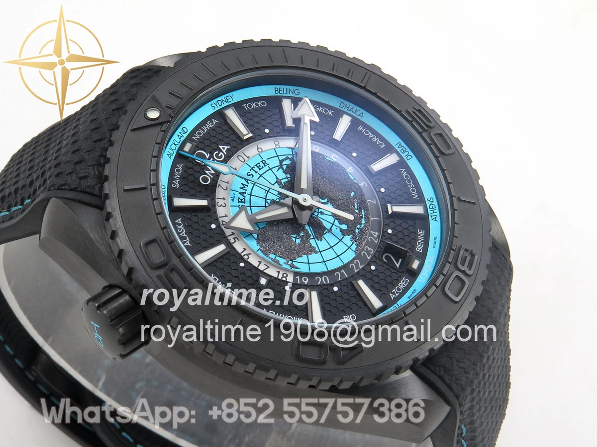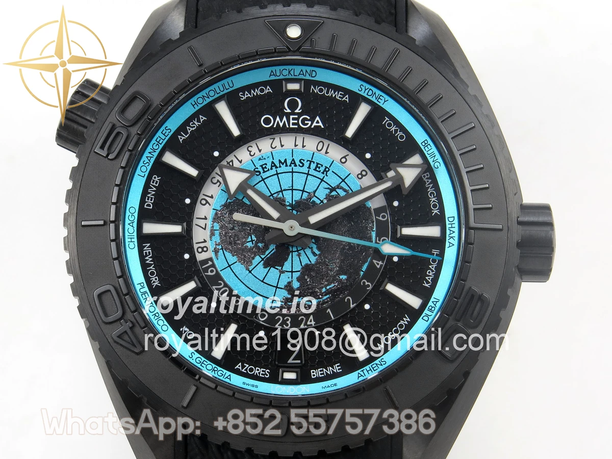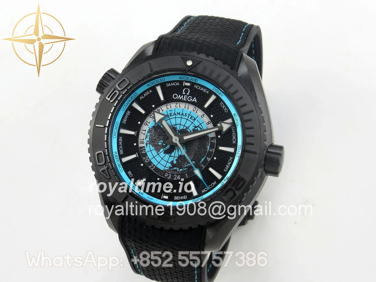 Omega Planet Ocean 45.5mm GMT Worldtimer Real Ceramic VSF Black/blue Dial On Black Rubber Strap 8938