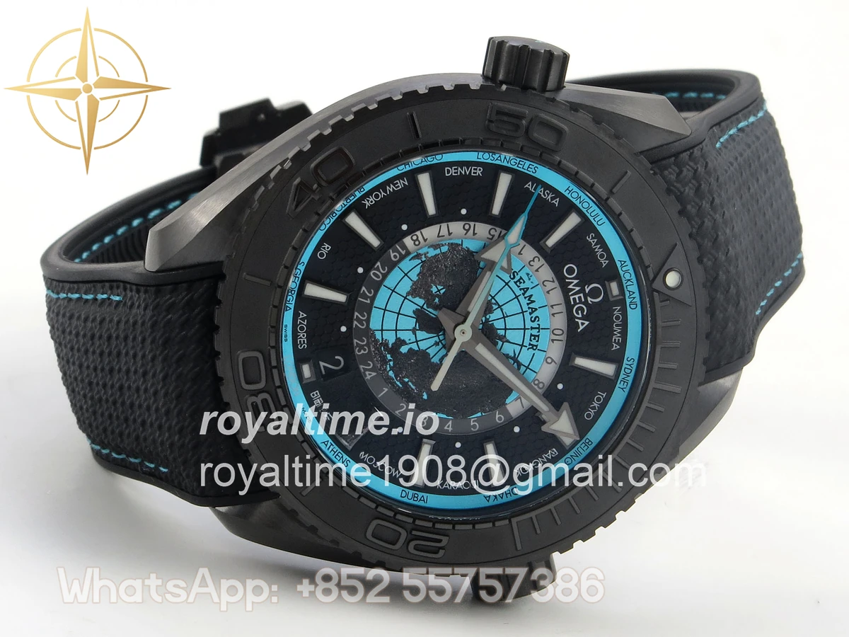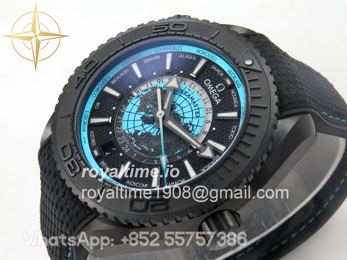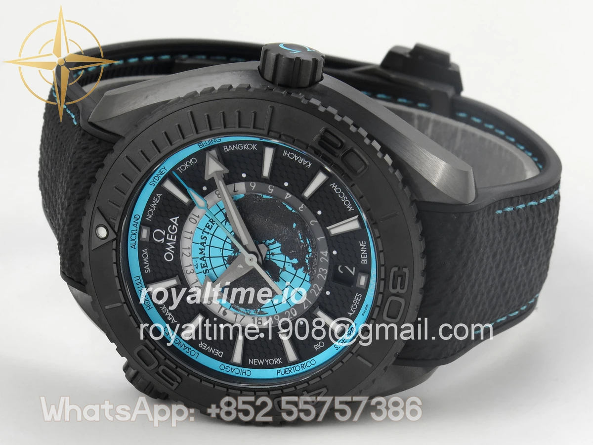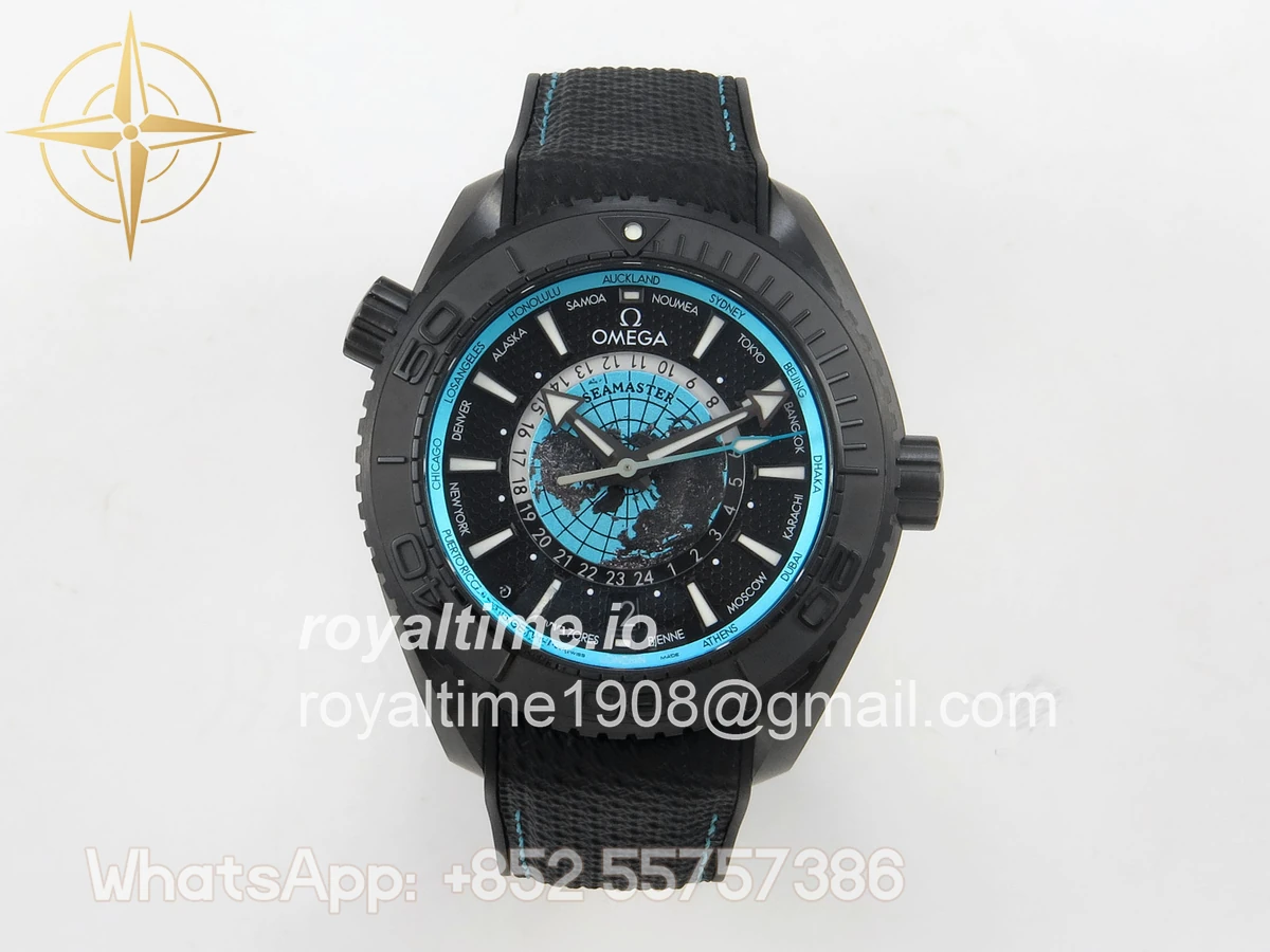 Omega Planet Ocean 45.5mm GMT Worldtimer Real Ceramic VSF Black/blue Dial On Black Rubber Strap 8938