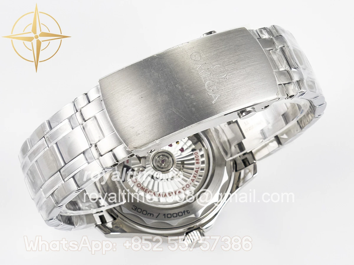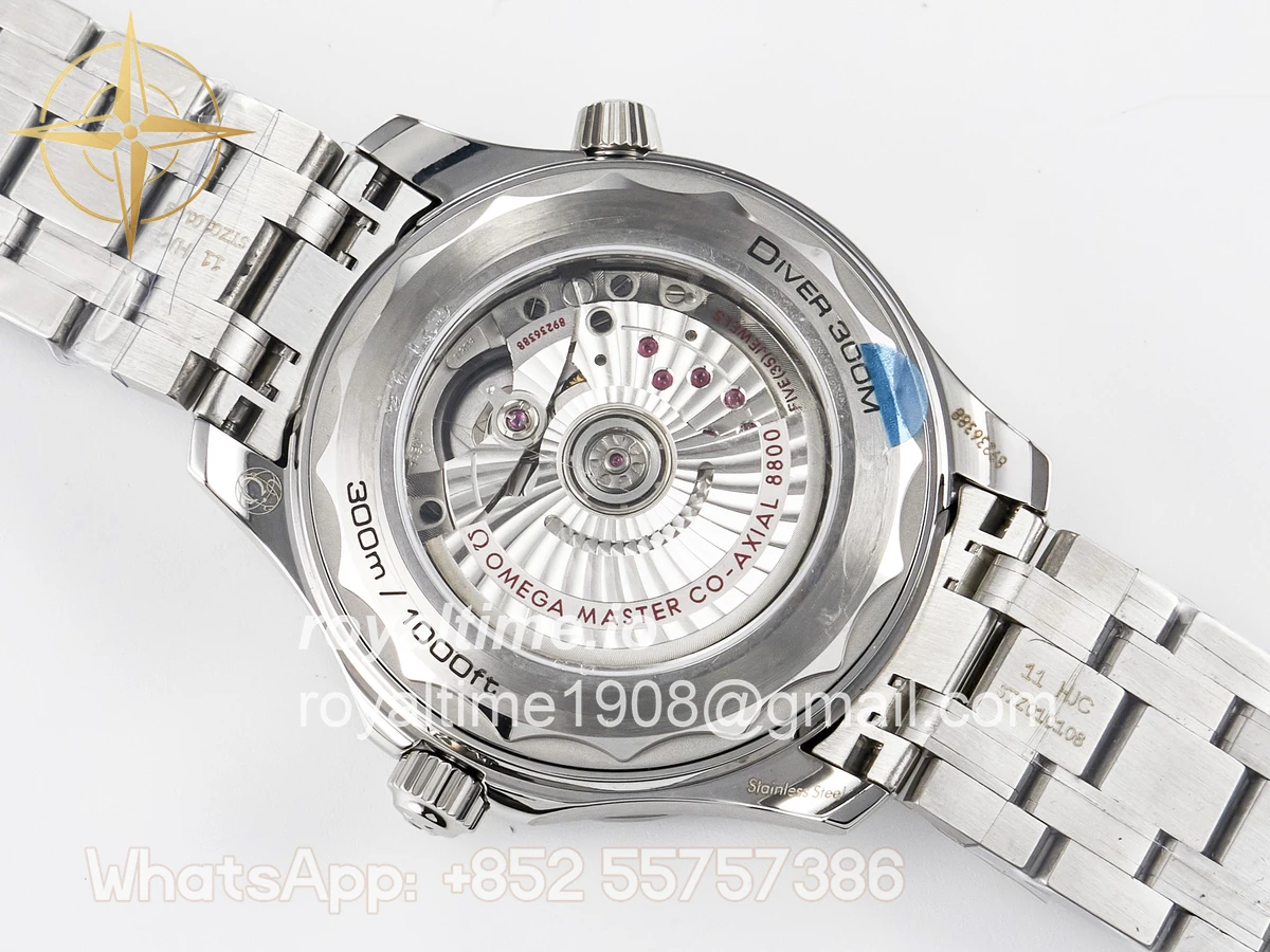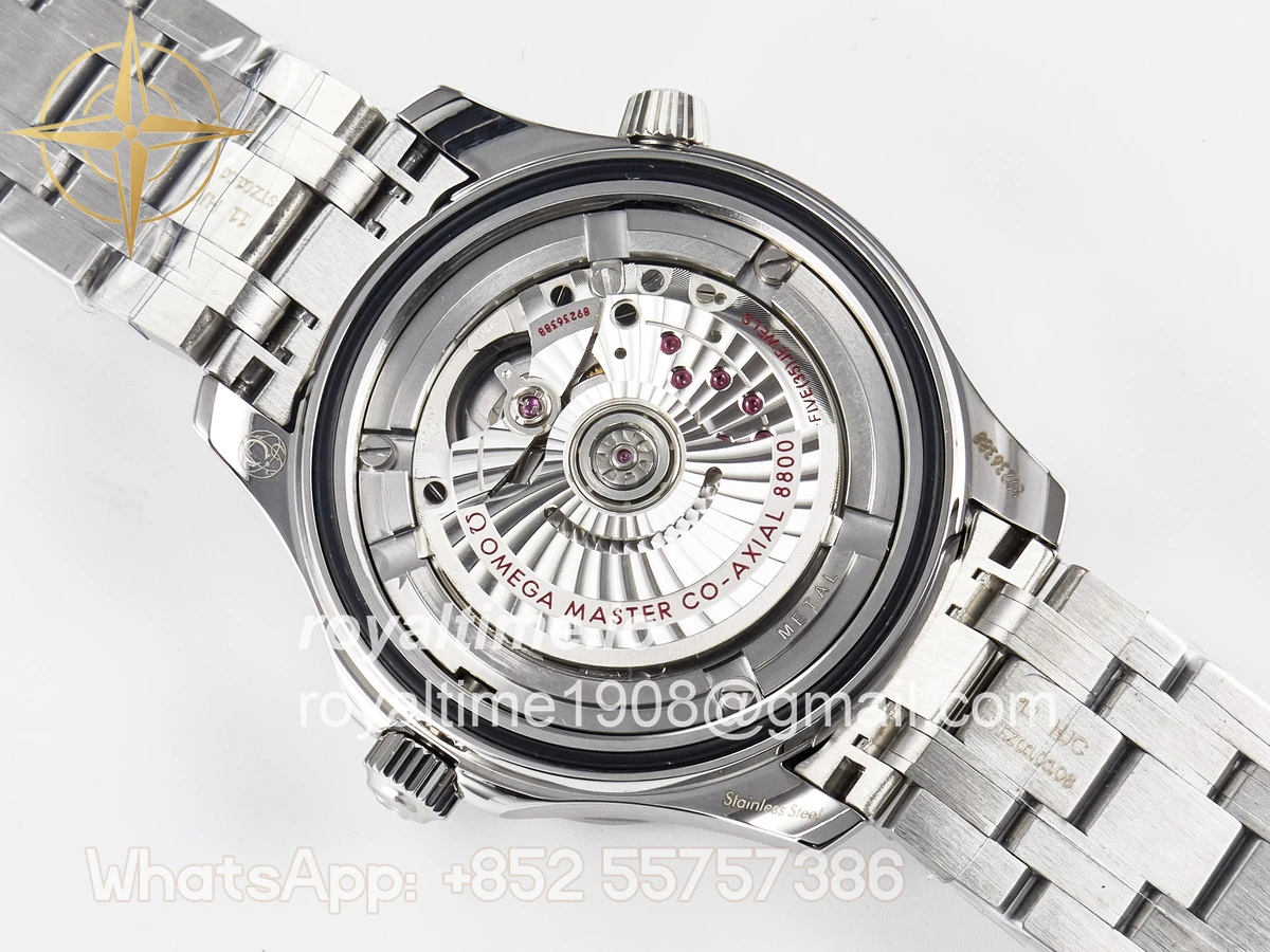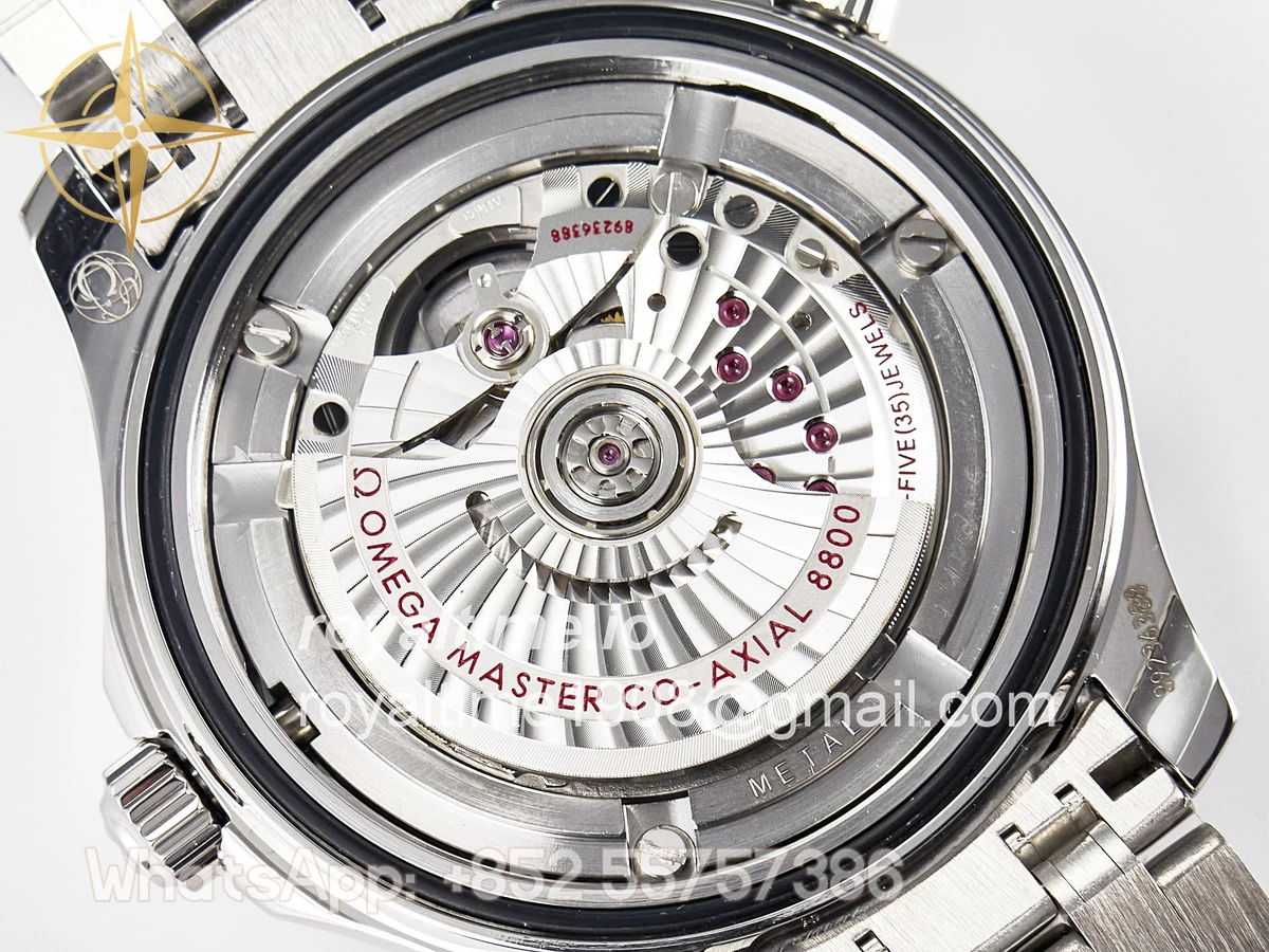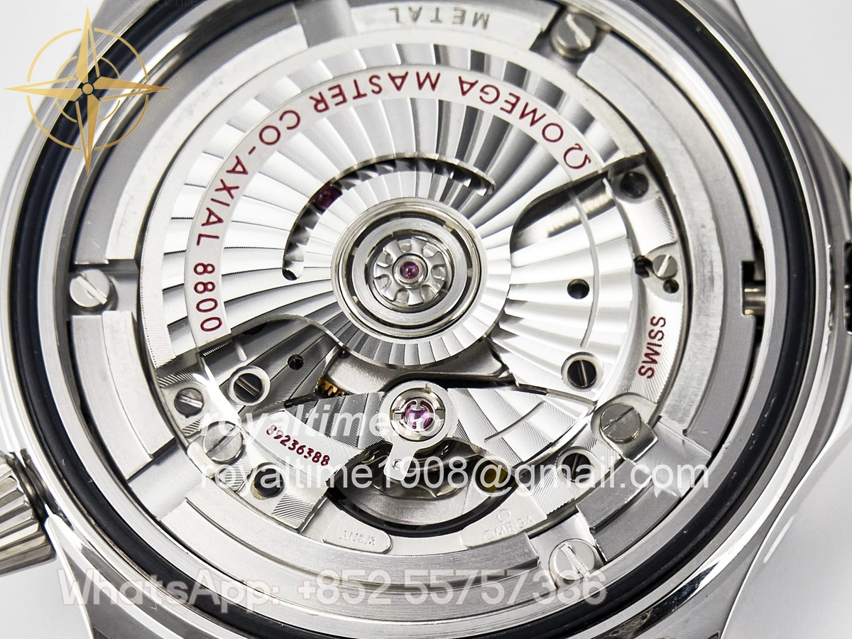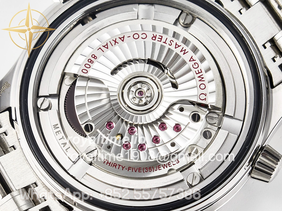 | Movement | Asian 2824 automatic movement decorated to Omega 8800 movement, black balance wheel |