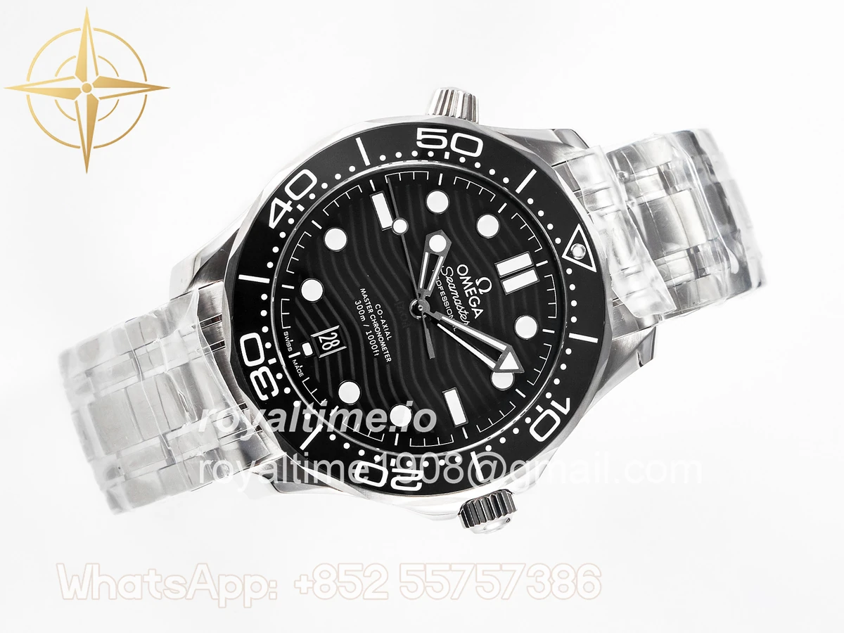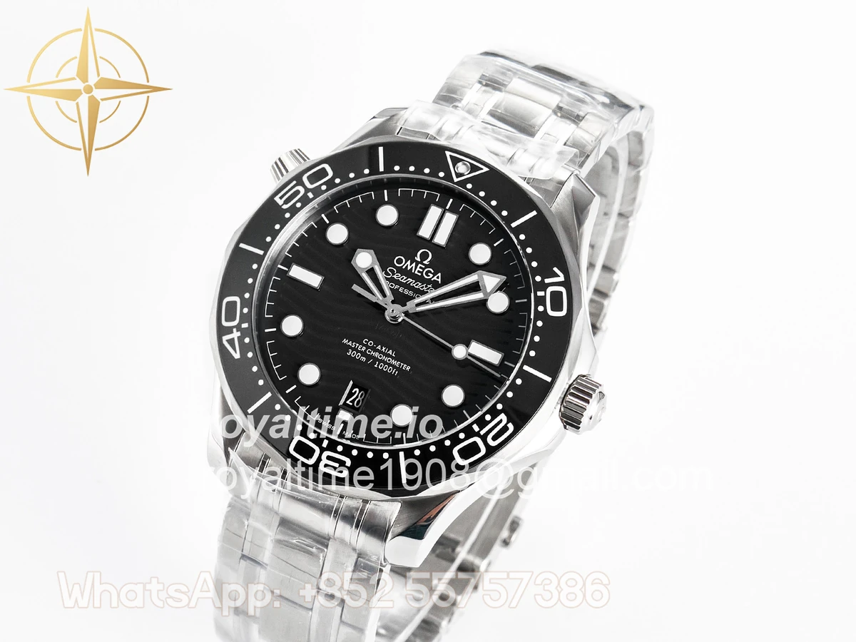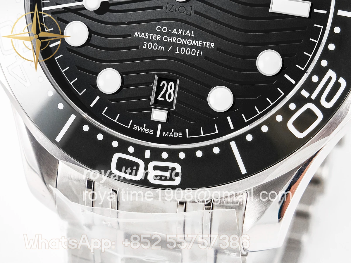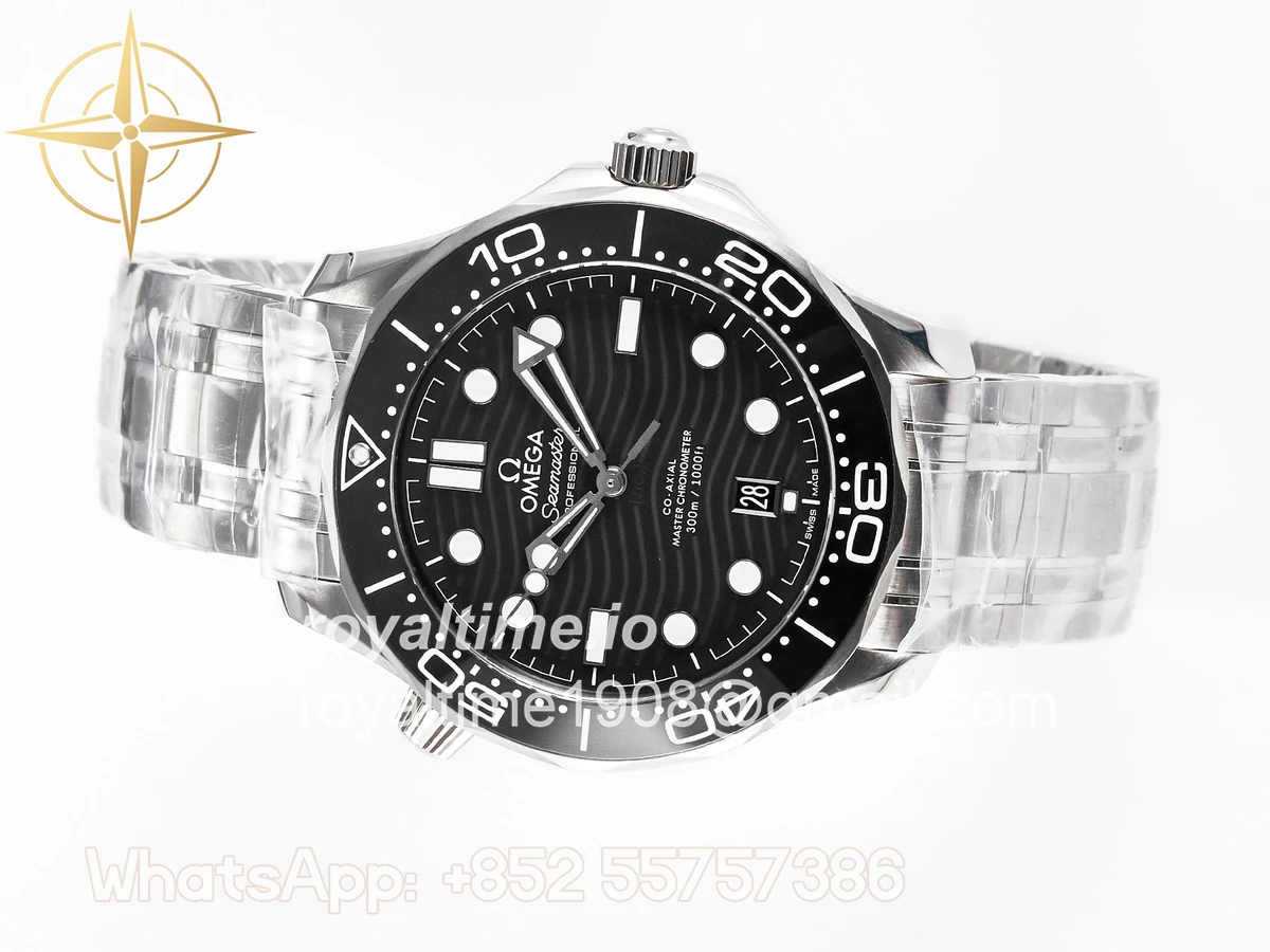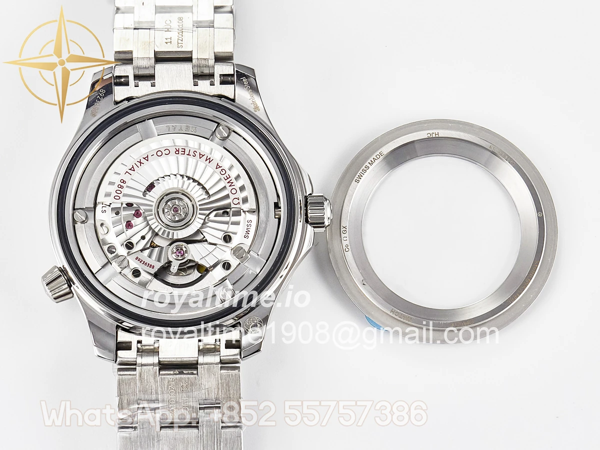 | Movement | Asian 2824 automatic movement decorated to Omega 8800 movement, black balance wheel |