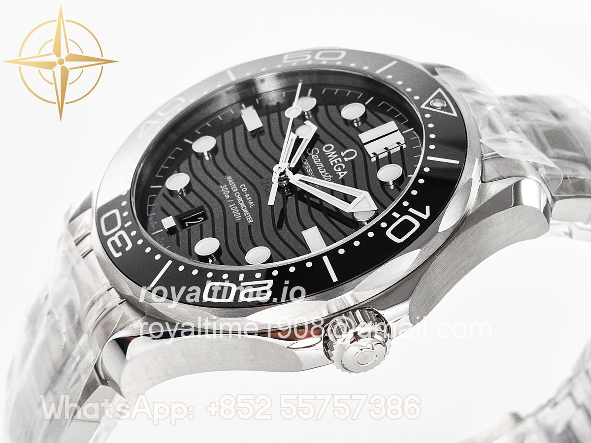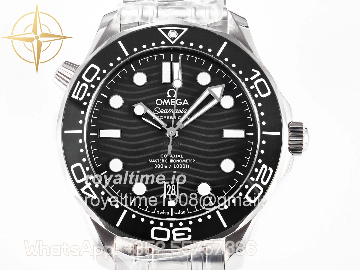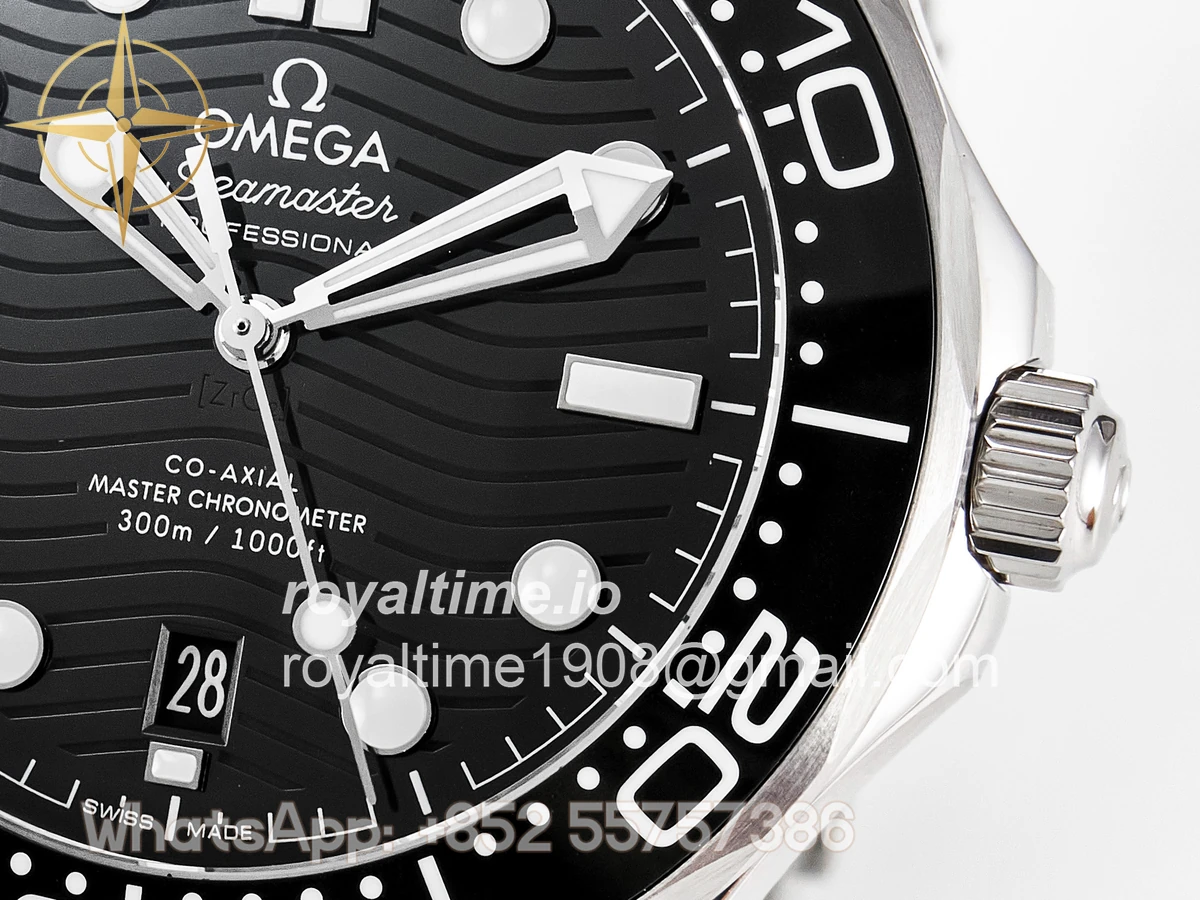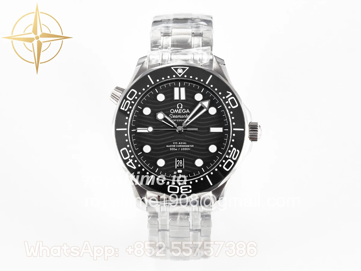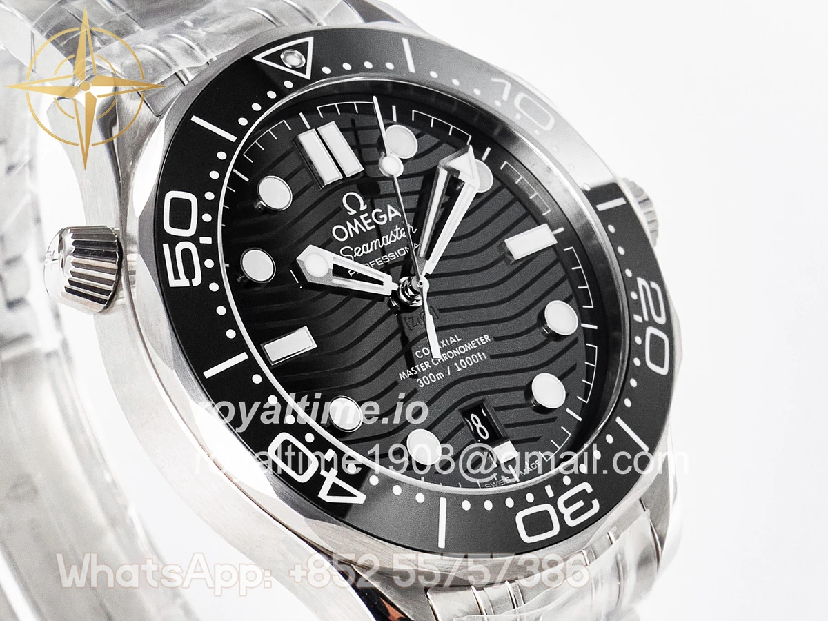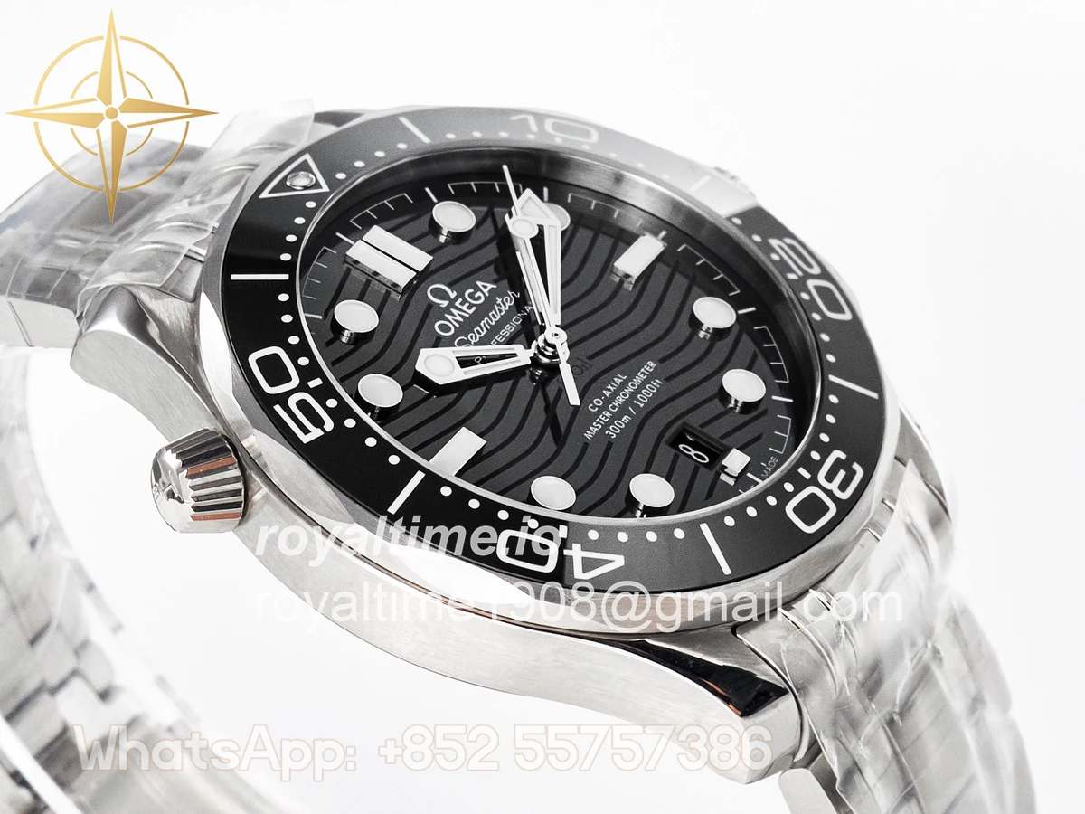 | Movement | Asian 2824 automatic movement decorated to Omega 8800 movement, black balance wheel |