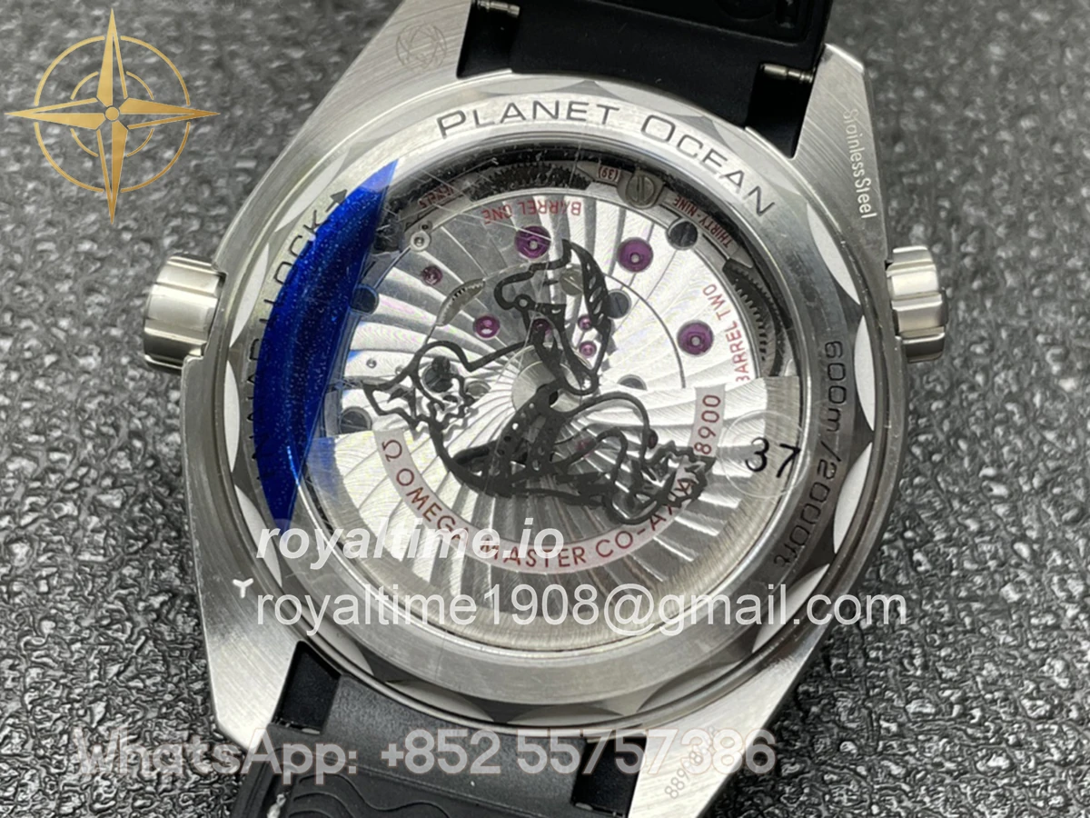 | Movement | Platinum plated super clone Asian A8900 automatic, decorated insignia rotor, all markings of Omega Calibre 8900 present |