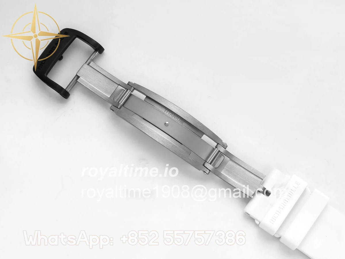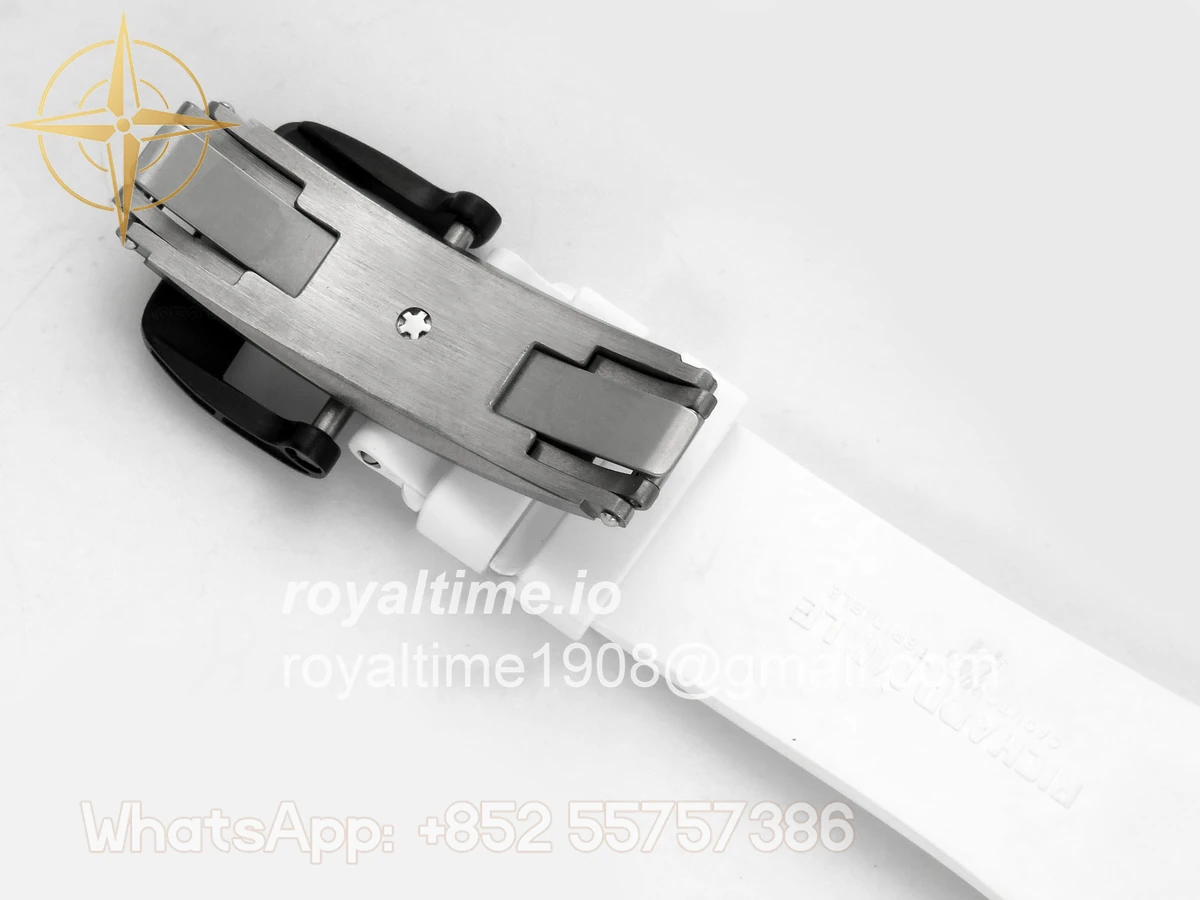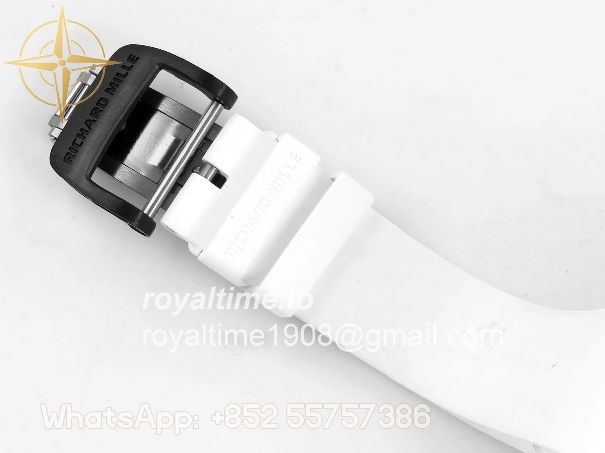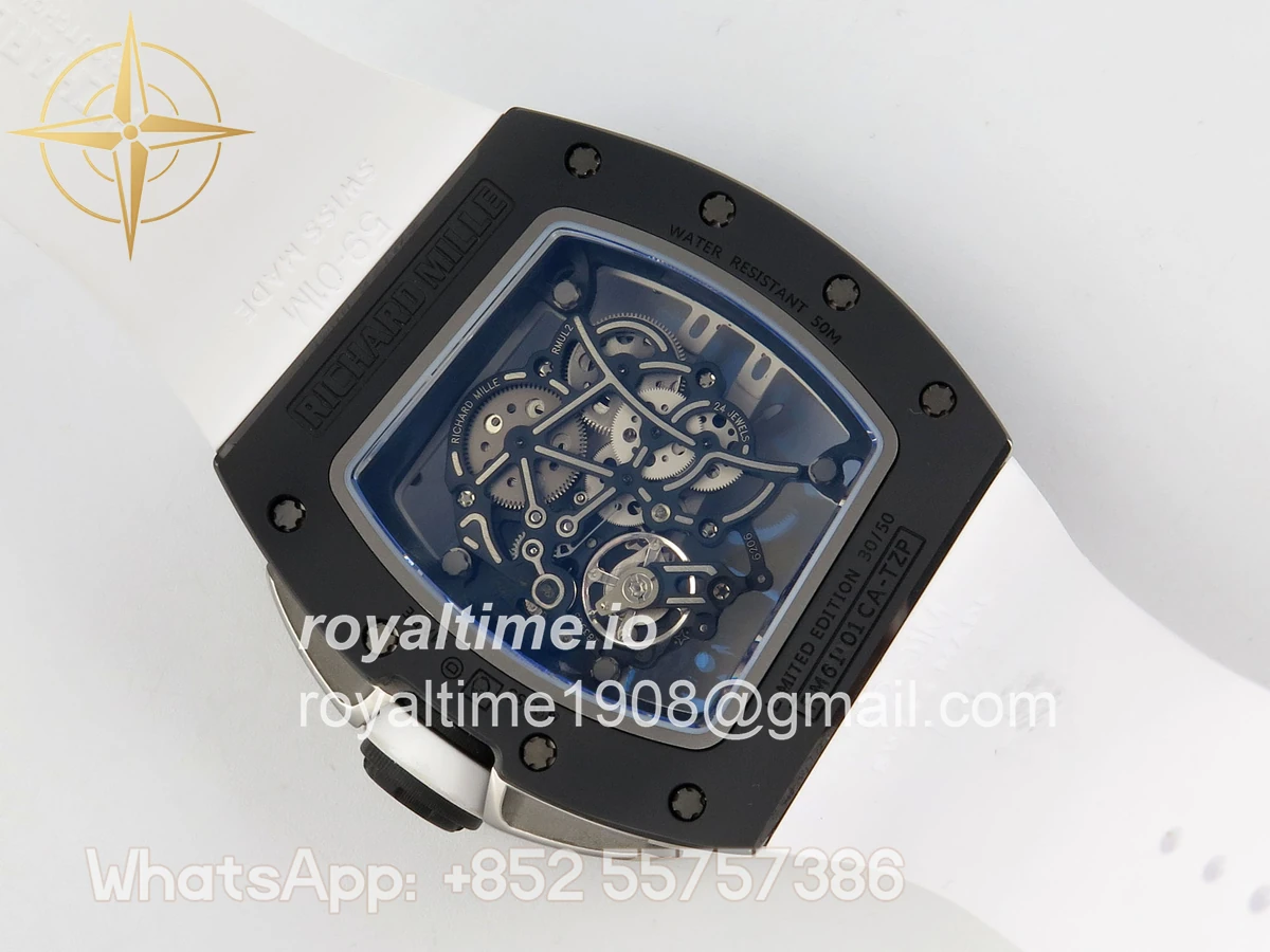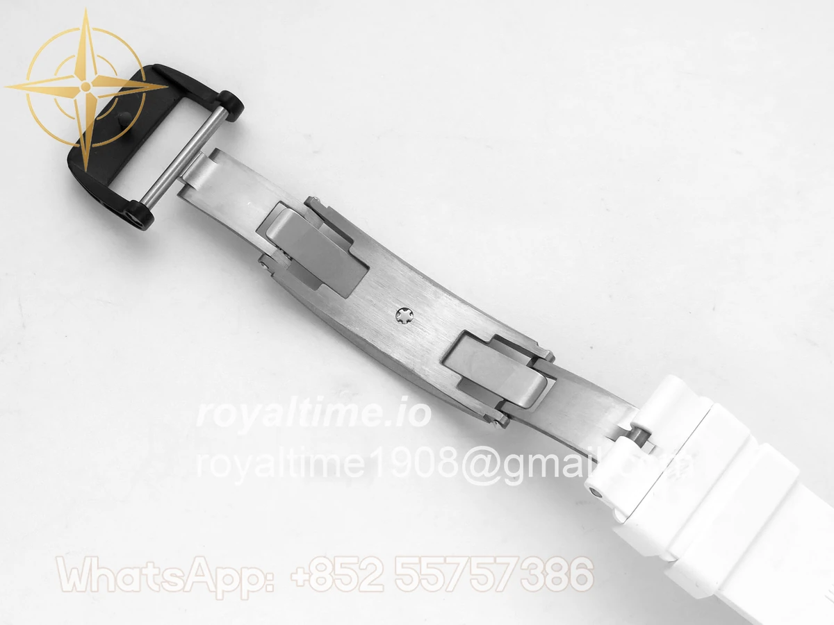 Size 43mm x 14.5mm Movement Free Sprung Vaucher RMUL2 skeleton movement, the best asian RM movement at the moment, same as genuine Functions Hours, minutes and seconds display Case Black ceramic case Crystal Scratch-proof sapphire crystal with AR coating Dial Skeleton dial Bezel Black ceramic bezel Strap White rubber strap Clasp Deployant clasp Water resistance >50 Meters Please be informed that this rating is merely a guide. We do do not advise submerging or immersing any replica watch in water unless you have had your watch water-proofed by a professional. We do not guarantee the product’s water-resistance and as such we do not refund, offer store credit, exchange or do a free repair on any watch that has water damage.