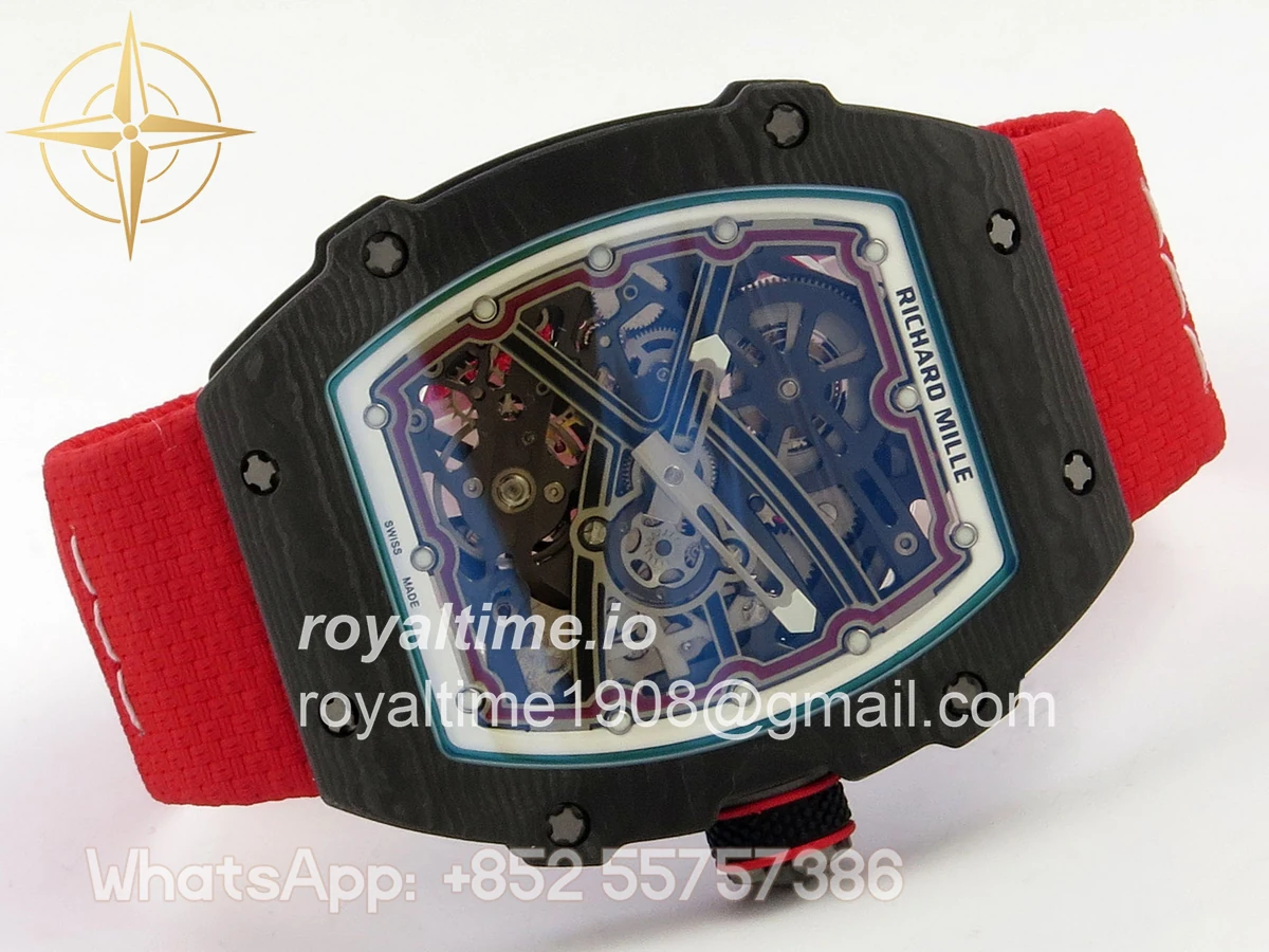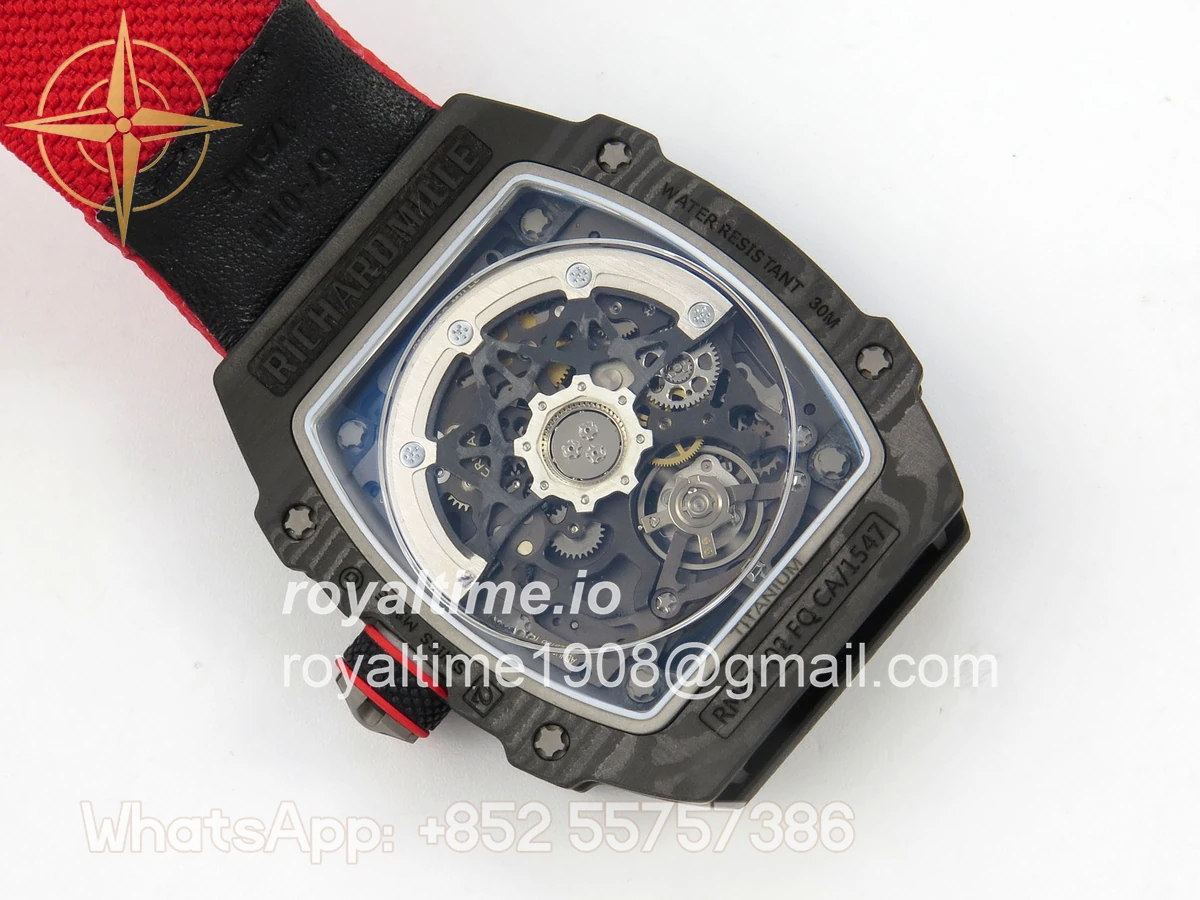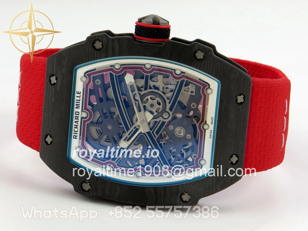 Size 39mm x 7.8mm (same size as genuine) Movement Asian modified clone CRMA7 skeleton movement Functions Hours and minutes display Case Black NTPT case with updated unique pattern Crystal Arc scratch-proof sapphire crystal with AR coating Dial Skeleton dial Strap Red Elastic strap Water resistance >50 Meters Please be informed that this rating is merely a guide. We do do not advise submerging or immersing any replica watch in water unless you have had your watch water-proofed by a professional. We do not guarantee the product’s water-resistance and as such we do not refund, offer store credit, exchange or do a free repair on any watch that has water damage.